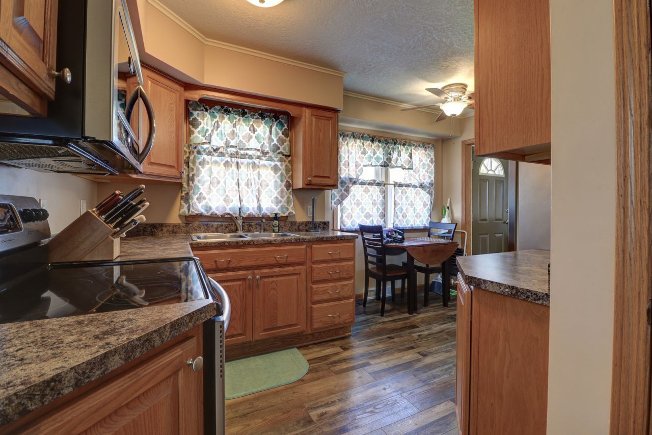 BEAUTIFUL RANCH HOME, UPDATED THROUGHOUT! Inviting 8 x 20 front deck area. Modern kitchen with stainless steel appliances included. New flooring throughout main level. Living room with coat closet at entryway. Two bedrooms with closets with ceilings fans. Clean full bath. Lower level affords a finished family room, spacious laundry room w/washer & dryer included and additional storage room. Fenced yard with garage parking. New sewer line 2021. Make this very well-maintained house your new home!!!