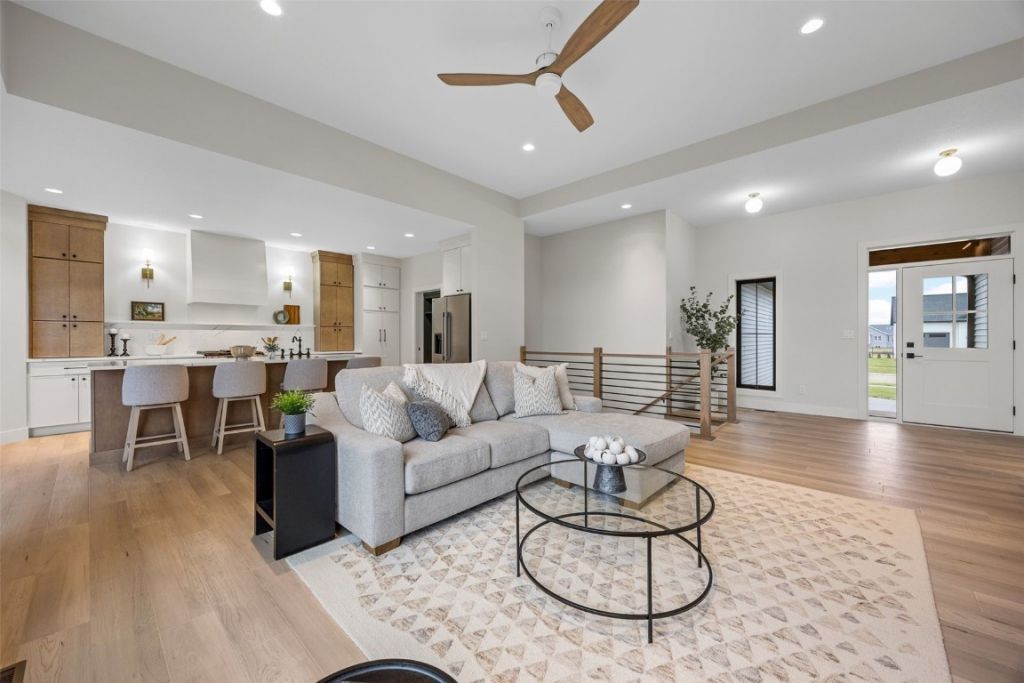Newly completed ranch by Martin Built Homes in Silver Rock Estates offering 6 bedrooms, 3 full baths, and a rare 4-stall garage. Designed for both style and function, the kitchen features Huck-style tower cabinets in Steam, a custom hood vent, Maple Coastline island, quartz countertops with slab backsplash, and a walk-in pantry. The great room is anchored by a gas fireplace, and the mudroom includes built-in lockers for everyday organization. The primary suite offers dual vanities, tiled shower, and private water closet. The finished lower level adds three additional bedrooms, a full bath, wet bar, and spacious family room with fireplace. Enjoy outdoor living on the covered patio and the convenience of a garage gas line ready for future heat.